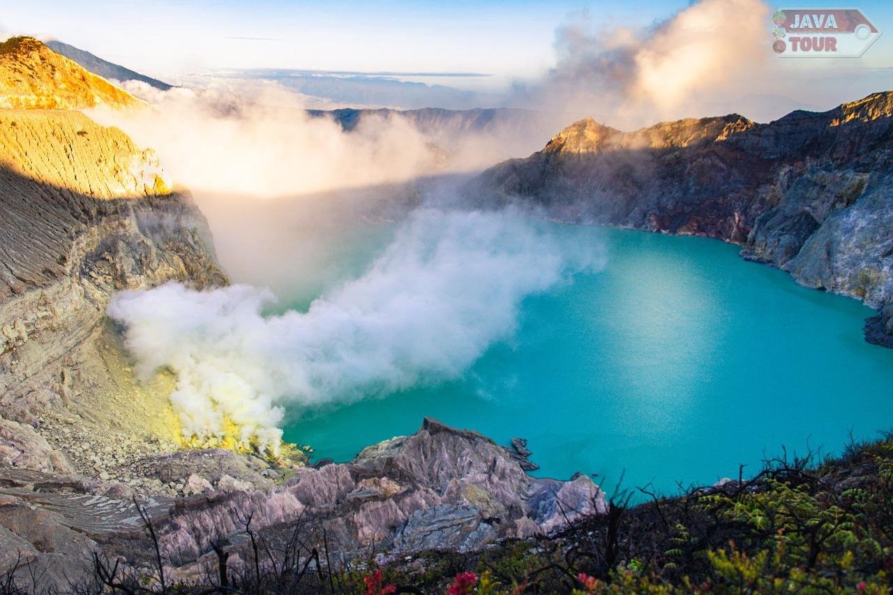 It is still dark when you set out to discover Kawah Ijen accompanied by your guide. You climb alongside the sulphur carriers who walk the volcano every day, carrying their balanced baskets, in order to extract the yellow crystals from the edge of the largest acid lake in the world. The climb is regular and continuous through the forest to the edge of the crater. Optional descent to the edge of the milky green lake to get a closer look at the work of the miners. Arriving at night, you have the chance to see the A extraordinary spectacle of blue gas flames in a completely unreal atmosphere.